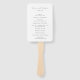 Ventilateur à main du programme de mariage moderne, au design simple, alliant un script élégant et des polices serif classiques.