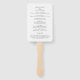 Ventilateur à main du programme de mariage moderne, au design simple mais élégant, avec des polices serif et script.