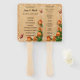 Les éventails de programme de mariage sont un choix populaire pour les cérémonies d'été. C'est une façon élégante de garder les invités au frais et de fournir les détails importants au moment où vous dites "oui". Organisez-vous votre événement à l'extérieur ? Il n'est pas surprenant que les gens aient besoin de quelque chose pour se rafraîchir. C'est pourquoi un éventail personnalisé de programme de mariage est le cadeau idéal à offrir lors de votre mariage. Personnalisez et créez en ajoutant et en modifiant le texte dans les champs prévus à cet effet. Vous pouvez changer le style, la taille et la couleur de la police, ainsi que le type de papier.