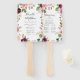 Élégant éventail de programme de mariage floral présentant vos noms encadrés par des roses et de la verdure peintes à l'aquarelle dans des tons de rose blush, pêche, bordeaux, violet et vert. Personnalisez les éventails du programme de mariage floral en ajoutant la date et le lieu de votre mariage, l'ordre des événements et le cortège de mariage au dos. Conçu pour se coordonner avec notre collection de mariage Rustic Moody Floral.