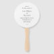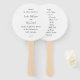 Éventail à main de programme de mariage moderne avec un design simple avec votre monogramme et les détails de l'événement dans un script manuscrit.