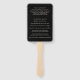 Éventails à main pour programme de mariage moderne présentant un design épuré et simple avec des polices grasses.
