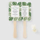 Ventilateur de mariée feuille tropicale verte et dorée. Il présente des feuilles de Fromage Leaf Philodendron (Monstera deliciosa) ou de Fromage Suisse Plante et feuilles de palme en vert avec contour d'or. Votre libellé est dans un cadre blanc avec contour doré.