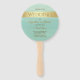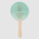 Ventilateurs de programme de mariage vert menthe simples, élégants, avec détails en feuille d'or et écriture moderne.