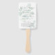 Programme de mariage verdoyant Eucalyptus Aquarelle Ventilateur à main Gardez vos invités cool et informés avec cet élégant programme de mariage verdoyant Ventilateur à main! Doté d'une délicate aquarelle d'eucalyptus, ce ventilateur est à la fois élégant et pratique, ce qui en fait l'ajout parfait à un mariage extérieur ou d'été. Caractéristiques du produit : Personnalisable : Personnalisez avec les détails de votre cérémonie, les noms de la fête de mariage et les notes spéciales. Elégant design de verdure : Des accents d'aquarelle d'eucalyptus doux ajoutent une touche intemporelle et romantique. Fonctionnel et élégant : Parfait pour les mariages par temps chaud, offrant à leurs hôtes confort et informations. Impression de haute qualité : Imprimée de façon professionnelle sur un carton durable avec une poignée en bois robuste. Ce ventilateur à main d'eucalyptus, qui est une tenue de séjour pratique et magnifique, assure à vos invités un séjour confortable tout en suivant votre journée spéciale.