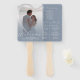 Séjournez cool et fêtez votre journée spéciale dans le style avec notre programme de mariage unique Fan à main, magnifiquement conçu avec un dégradé bleu poussiéreux, une photo chère du couple, et délicat faux coeur argent. Ce ventilateur de main non seulement garde vos invités à l'aise, mais ajoute également une touche d'élégance à votre programme de mariage. Customisez avec vos propres détails. .