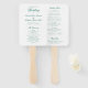 Programme de mariage de style classique Ventilateur à main avec des mots d'accent dans une élégante typographie de calligraphie. Tout le texte est un ton de bijou vert émeraude sur un arrière - plan blanc et peut être modifié à toutes les couleurs que vous souhaitez en cliquant sur le bouton "personnaliser". Ces éventails de mariage sont parfaits pour un mariage formel.