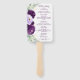 Ces fans de main du programme de mariage seront un succès avec vos invités, fournissant des informations de cérémonie et de mariage avec un style élégant moderne. Le bouquet fleuri d'aquarelle violette avec végétation d'eucalyptus encadre le texte sur le côté gauche. Les noms de la mariée et du marié sont dans une police de caractères moderne et stylisée attachée avec une esperluette. Trouvez les produits correspondants dans la collection, ou envoyez-moi un message via Zazzle Conversation pour plus de produits ou différentes couleurs.
