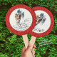 Un élégant ventilateur à deux côtés de la frontière rouge derby propose des hippocampes et des jockeys et, d'un côté, un endroit où vos invités peuvent noter leurs paris derby avec votre nom de l'autre côté. CORRESPONDANCE d'objets dans notre collection.