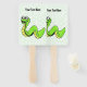 Ce ventilateur est blanc avec des pois verts et un serpent vert néon et jaune avec un visage souriant. Customisez votre texte à l'avant et à l'arrière avec les modèles.