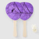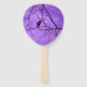 Ce programme éventail à main a une silhouette d'un seul corbeau noir perché sur les branches d'arbres noirs dénudés sur un ciel violet brumeux à l'avant et à l'arrière.