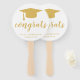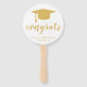 Ventilateur de main moderne avec un grand casquette et des "félicitations" dans une élégante typographie d'écriture ainsi que le nom du diplômé et l'année de classe en or sur un arrière - plan blanc. Ces ventilateurs simples et jolies sont parfaits pour une jeune diplômée et sont une excellente façon d'ajouter une touche personnelle à votre fête de remise des diplômes.