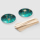 Or, clés antiques avec engrenages et cadrans accrochés sur chaînes dorées sur arrière - plan vert lumineux.