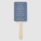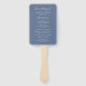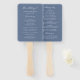 Ventilateur à main du programme de mariage moderne avec un design typographique contemporain avec les en-têtes en typographie de script élégante ainsi que vos détails dans une mise en page simple et minimale. Le thème de couleur est bleu poussiéreux et peut être modifié par l'outil d'édition de conception.