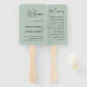Style minimaliste blanc moderne, texture de lin vert pâle, typographie de script noir personnalisable, design élégant de ventilateur de main de mariage. La texture en lin imprimé vert clair apporte une touche d'élégance classique et organique. D'autres couleurs sont disponibles.