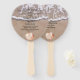 Ventilateur du programme de mariage sur le thème de la plage, avec une photo de l'eau lavant sur une plage de sable et un coquillage unique. Personnalisez le texte pour votre jour de mariage. Des produits correspondants sont disponibles.