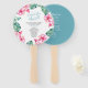 Ce ventilateur de programme de mariage à thème tropical est conçu à l'aide de ma fleur d'hibiscus peinte à la main et de feuilles de palmiers monstères dans les tons rose, orange, turquoise, bleu et vert sur un arrière - plan blanc immaculé dans un format de cercle unique. Les noms des mariées et des mariés et la chronologie du programme de mariage des îles sont placés dans un script écrit à la main et la typographie sans serif dans un bleu turquoise. Ce design botanique à double face fleuri et verdoyant est un choix de style de mariage de plage pour les mariages des Caraïbes, du luau, de Hawaiian, de l'été, de destination et de Floride. Conçu par Victoria of Do Tell a Belle. Pour en savoir plus sur la papeterie mariage, visitez www.zazzle.com/dotellabelle