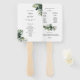 Gardez vos invités cool grâce à ce ventilateur de programme tropical, doté de feuilles botaniques verts. Parfait pour une destination ou un mariage sur la plage, ce ventilateur comprend une poignée et fournit une façon élégante de présenter vos détails mariages.