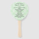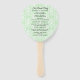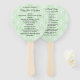 Joli ventilateur de programme de mariage fait dans un motif vert clair et blanc floral damask. Personnalisez le texte, des deux côtés du ventilateur, pour votre jour de mariage.