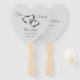 Ce ventilateur de pagaie est présenté dans une belle forme de coeur avec des coeurs de cristal de couleur argentée avec texte de script fantaisie couleur argent avec des exemples de noms et date, personnaliser et changer les noms et la date à votre. Le dos est de couleur argentée claire.