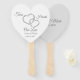 Ce ventilateur de pagaie est présenté dans une belle forme de coeur avec des coeurs de cristal de couleur argentée avec texte de script fantaisie couleur argent avec des exemples de noms et date, personnaliser et changer les noms et la date à votre. Le dos est de couleur argentée claire.
