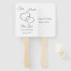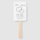 Ce ventilateur de pagaie est présenté dans une belle forme rectangulaire avec des coeurs de cristal de couleur argentée avec texte de script de couleur argentée avec des exemples de noms et date, personnaliser et changer les noms et la date à la vôtre. Le dos est blanc.