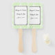 Ce ventilateur de pagaie mariage est affiché dans une impression arrière - plan à la menthe verte avec des noms d'échantillons et la date, personnaliser et changer le texte à votre.