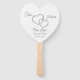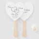 Ce ventilateur de pagaie est présenté dans une belle forme de coeur avec des coeurs de cristal de couleur argentée avec texte de script fantaisie couleur argent avec des exemples de noms et date, personnaliser et changer les noms et la date à votre. Le dos est blanc.