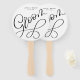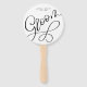 Ventilateur de papier mariage moderne et fantaisiste avec script de marié à lettres. Ce fan mariage sera la meilleure façon de se mettre à l'aise pendant la cérémonie de mariage. Un ventilateur de mariée assorti est disponible.