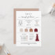 Cette carte d'information pour la fête de mariage est entièrement personnalisable. Modifiez pour l'ensemble de votre cortège de mariage, y compris la demoiselle d'honneur, la porteuse de fleurs, etc. Modifiez tout le texte et changez les couleurs pour qu'elles correspondent à votre mariage. Cliquez simplement sur le bouton bleu "PERSONNALISER" en haut à droite. Faites ensuite défiler vers le bas et cliquez sur le bouton "Modifier à l'aide de l'outil de conception" pour personnaliser entièrement votre carte.