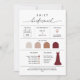 Cette carte d'information pour la suite de la mariée est entièrement personnalisable. Modifiez-la pour l'ensemble de votre suite de la mariée, y compris la demoiselle d'honneur, la porteuse de fleurs, etc. Modifiez tout le texte et changez les couleurs pour qu'elles correspondent à votre mariage. Cliquez simplement sur le bouton bleu "PERSONNALISER" en haut à droite. Faites ensuite défiler vers le bas et cliquez sur le bouton "Modifier à l'aide de l'outil de conception" pour personnaliser entièrement votre carte.