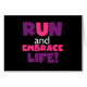 Si vous aimez courir, courir 5Ks, 10Ks, demi-marathons ou marathons, vous adorerez ce texte coloré en violet et rose qui lit Run and Embrace Life !