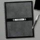 The cover features a sleek Charcoal Gray designer texture with bold black framing, projecting a serious, authoritative aesthetic. The central design showcases a striking, custom metallic-look name badge (a printed graphic element), instantly conveying executive status. The minimalist design keeps the focus strictly on professionalism and personal branding. This planner is an ideal gift for a boss, manager, client, or graduate, making it a highly valued holiday or promotion gift. The name on the badge is fully editable. Easily personalize the planner with a monogram, full name, or professional title. NOTE ON DESIGN: The beautiful textured look and metallic badge are printed design elements applied to the durable planner cover.