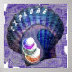 Un coquillage de Saint-Jacques bleu et quelques mystérieux écrits russes déformés, des formes de gouttes de larme et de croissant. Le texte est personnalisable. Conçu par Alexandra Cook alias Linandara pour un lendemain lumineux et heureux.