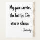 A design that speaks without words. This bold visual follows you through your daily planning, echoing quiet resilience. "My gaze carries the battles I’ve won in silence."