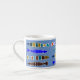Tous les poissons en mer, ces poissons lunatiques sont parfaits pour le décor orienté nautique dans une maison côtière ou un restaurant de bord de la mer. Cette tasse de café mignonne de café express est décorée des écoles des poissons dans les bleus, les sarcelles d'hiver et les tons arénacés de la terre de beiges et de brun qui créent une conception moderne d'amusement.