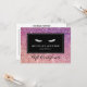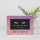 Coordonner avec les cils avec le modèle de carte de visite Parties scintillant violet/rose d'ici 12 h. Une image de parties scintillant violet/rose remplit l'arrière - plan de ce certificat cadeau personnalisable pour salons de cils. Une paire de cils blancs est une marque parfaite pour les extensions de cils, les maquilleurs, les compagnies cosmétiques, les barres de fouet et plus encore. Ce certificat cadeau est livré avec une enveloppe blanche standard. © 1201AM CREATIVE