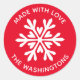 Un simple autocollant de flocon rouge et blanc avec l'accueil, Fabriqué avec amour. Personnalisez-le avec votre nom de famille. Amusez-vous pour vos gâteries et cadeaux de Noël faits maison ou faits à la main. Conçu pour vous par Blackberry Boulevard.