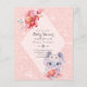 *** REMARQUE - transfert vers 'carte plate' pour plus d'options *** Félicitations pour la naissance de votre bébé garçon ou fille ou jumeaux! Cette invitation de baby shower comporte des champs de texte sur les deux côtés pour vous assurer de pouvoir économiser de l'argent en ajoutant tous les détails requis ici (pas besoin de cartes et pièces jointes de détails supplémentaires). Vous pouvez ajouter vos détails rsvp, le registre des cadeaux, le site du baby shower, les détails du lieu et du thème, le menu, les idées cadeaux, la demande de réservation et plus encore. Vous pouvez avoir des détails de streaming en direct que vous voulez ajouter, un hashtag, scannage ou code à barres, etc. Beaucoup d'options modernes maintenant pour les baby showers. Vous pouvez modifier le texte de cette invitation et l'utiliser pour d'autres événements, y compris la faire-part de bébé, la cérémonie de baptême, le baptême, le baptême ou d'autres événements. Amusez-vous et utilisez le service GRATUIT LIVE DESIGNER de Zazzle pour toute modification personnalisée et aide au design. Baby girl éléphant, design rose.