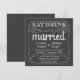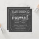 Faire-part de mariage élégant sur tableau noir -- Boucles et volutes tourbillonnantes et cadre rustique chic sur fond gris ardoise. Ajoutez vos noms et informations de mariage dans ce modèle facile à utiliser. Écriture à la craie de style vintage et typographie fantaisiste - changez les styles de police pour refléter votre thème de mariage rétro formel ou semi-formel. Le style d'invitation carré sur tableau noir est parfait pour les mariages modernes branchés avec une touche amusante de charme sophistiqué pour les mariées et les mariés traditionnels. REMARQUE : ce design de produit est configuré pour des cartes carrées uniquement, qui nécessitent un affranchissement supplémentaire. D'autres tailles et versions entièrement personnalisables sont disponibles en magasin. Veuillez nous contacter pour obtenir de l'aide sur la personnalisation si vous avez besoin d'espace supplémentaire pour vos coordonnées de mariage.