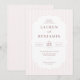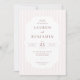 Cette élégante invitation de mariage présente un design classique avec des rayures roses verticales et un cadre orné central, créant un look équilibré et sophistiqué. La palette de couleurs rose pâle et blanc renforce l'ambiance romantique, tandis que la typographie serif ajoute une touche d'élégance intemporelle. Des éléments décoratifs comme les bords festonnés contribuent à son charme vintage, ce qui la rend parfaite pour les couples recherchant une esthétique traditionnelle mais raffinée pour leur jour spécial.