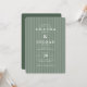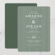 Cette élégante invitation de mariage présente une mise en page orientée verticalement avec un design classique et minimaliste. Le fond présente des rayures verticales subtiles dans des nuances variées de vert atténué, créant un arrière-plan sophistiqué pour la typographie sérif claire qui domine la composition. Le texte est aligné au centre, ce qui met en valeur la clarté et l'équilibre, tandis que la palette de couleurs de verts et de blancs transmet une esthétique intemporelle et formelle. Parfaite pour les couples recherchant un look discret mais raffiné, cette invitation donne le ton pour une célébration traditionnelle et mémorable.