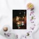 Faites-en un décembre inoubliable est une invitation à une fête de Noël/Fêtes de fin d'année à motif en aluminium anodisé doré représentant des arbres, une petite fille et un bébé, un corbeau et un renard. Le texte de l'invitation peut être mis à jour au verso de la carte. Les couleurs vont du noir profond au brun de Sienne brûlée, marron et tons dorés qui rappellent l'environnement naturel dans l'obscurité. Ces couleurs sombres feront ressortir les éléments en aluminium anodisé.