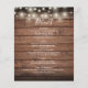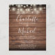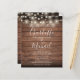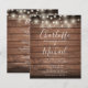 Une invitation de mariage rustique élégante et économique présentant de jolies guirlandes lumineuses, des noms de style signature et une typographie chic sur un fond de bois rustique personnalisé avec toutes les informations spéciales de votre jour de mariage au verso, y compris votre RSVP, hébergement et détails supplémentaires. Conçu par Thisisnotme©