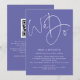 Ajoutez le code QR à votre site web de mariage au verso, cela en fait une option pratique pour que vos invités répondent et voient tous les détails sans avoir besoin de cartes de réponse et de détails séparées. Un design simple mais élégant sur un fond bleu-violet pervenche. L'ensemble de caractères stylé "Nous nous marions" prend la première place en haut. Le reste du texte peut être facilement personnalisé. Les couleurs du texte et du fond peuvent être modifiées si vous le souhaitez pour mieux correspondre à votre thème de mariage via l'option "personnaliser davantage".