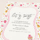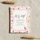 Un charmant design d'invitation de fiançailles capricieux présentant des éléments d'aquarelle rose doux, des verres à vin, des bouteilles de champagne, des fraises et des accents de dessert sucré. Le style peint à la main ludique associé à des tons de rose et d'or romantiques crée une atmosphère chaleureuse et festive parfaite pour les fêtes de fiançailles modernes. Idéal pour les couples recherchant une esthétique d'invitation amusante mais élégante qui se sent joyeuse, intime et sans effort.