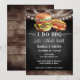 Cartes d'invitation de fiançailles pour couple de mariage Je fais du BBQ. Facile à personnaliser. Tout le texte est réglable et facile à modifier selon vos besoins. Éléments de fond rustique avec guirlandes lumineuses. Tourbillons et fioritures amusants de tableau noir. Graphiques aquarelle de hamburger et de hot-dog. Conception de fête BBQ en bar ou dans la cour arrière. Tous âges, il suffit de changer le texte.