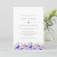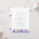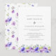 Une jolie invitation de mariage avec une bordure inférieure de fleurs de violettes aquarellées et de feuilles vertes. Le verso présente un motif de fleurs de violette.