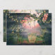Cette annonce de mariage à Sauvegarder la Date présente un cimetière effrayant de manière charmante. Il y a quelques vieilles pierres tombales avec un fond d'arbres tordus décorés de lumières florales charmantes et un beau ciel rose foncé.