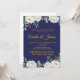 Belle invitation de mariage avec des fleurs blanches et du texte doré sur fond bleu marine. Parfait pour les mariages élégants et modernes